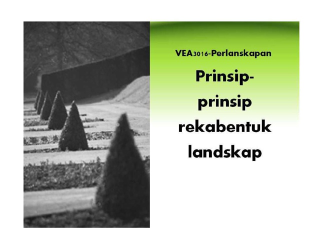Prinsip Rekabentuk Landskap merupakan satu tatacara menyusun dan mengolah elemen landskap seperti tumbuhan dalam satu kombinasi yang sesuai menarik dan berfungsi. Prinsip Reka Bentuk Landskap di luar negara. Tingkatan 3 Sains Pertanian 2.