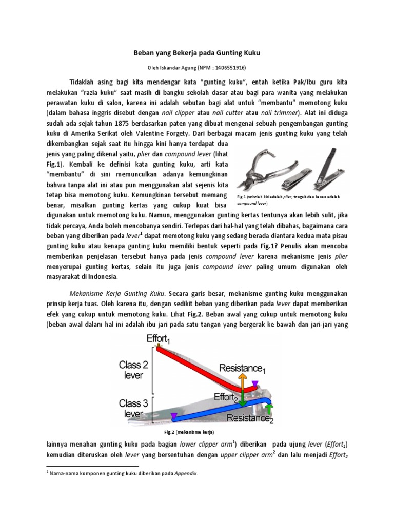 Gunting kuku merupakan pesawat sederhana contoh pesawat sederhana tuas atau pengungkit jenis i karena titik tumpu berada diantara titik. Gunting kuku yaitu aib satu peralatan fisika. Baskom berisi air hangat40-42ºC 1 buah.