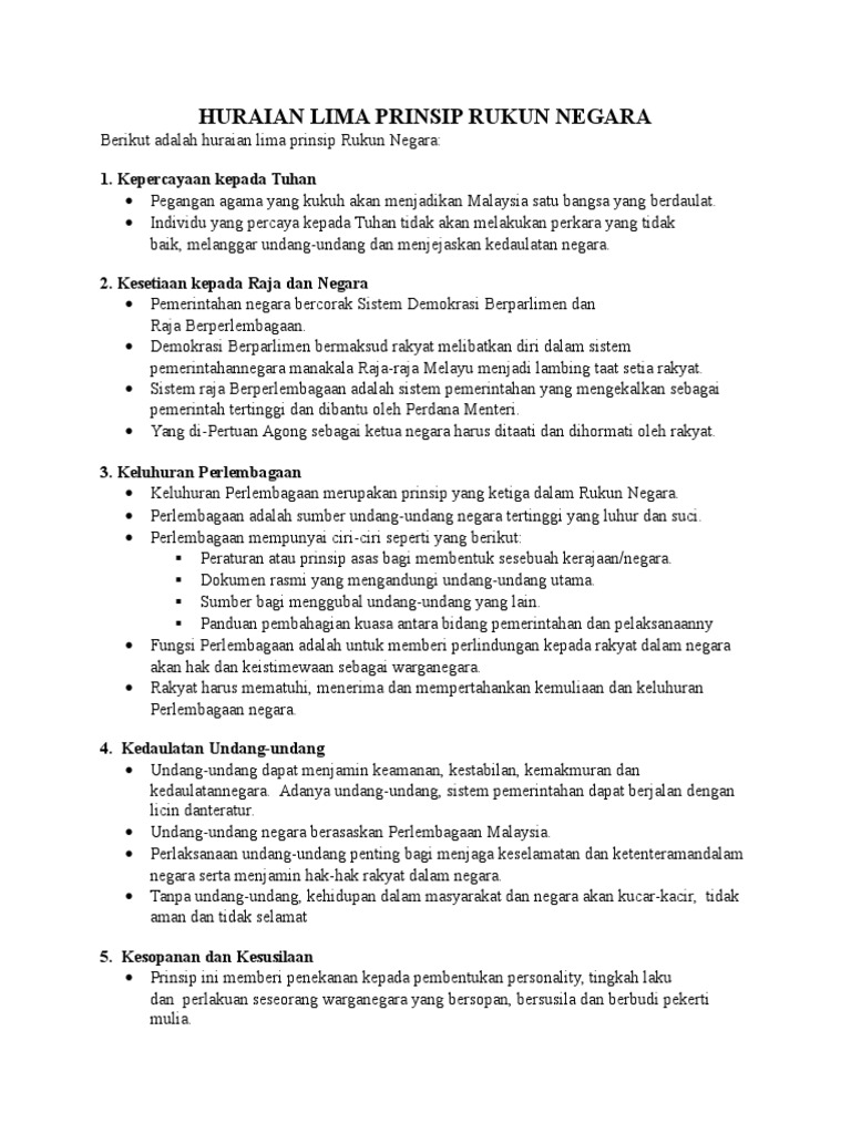 Jul 03 2021 sebagai perkongsian untuk anda di bawah dikongsikan maksud prinsip rukun negara kepentingannya kepada setiap warganegara malaysia. Rukun Negara Bahawasanya Negara Kita Malaysia mendukung cita-cita hendak. 2 Kesetiaan kepada Raja dan Negara.